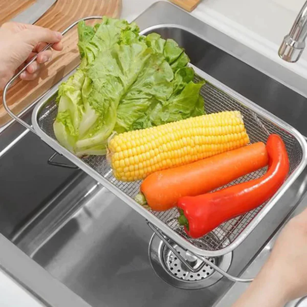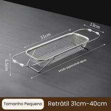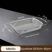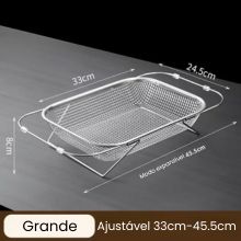 Prático , ajustável e em inox , ele se encaixa na sua pia e agiliza a rotina. Ideal para lavar frutas, verduras e louças, deixando sua cozinha organizada em segundos!