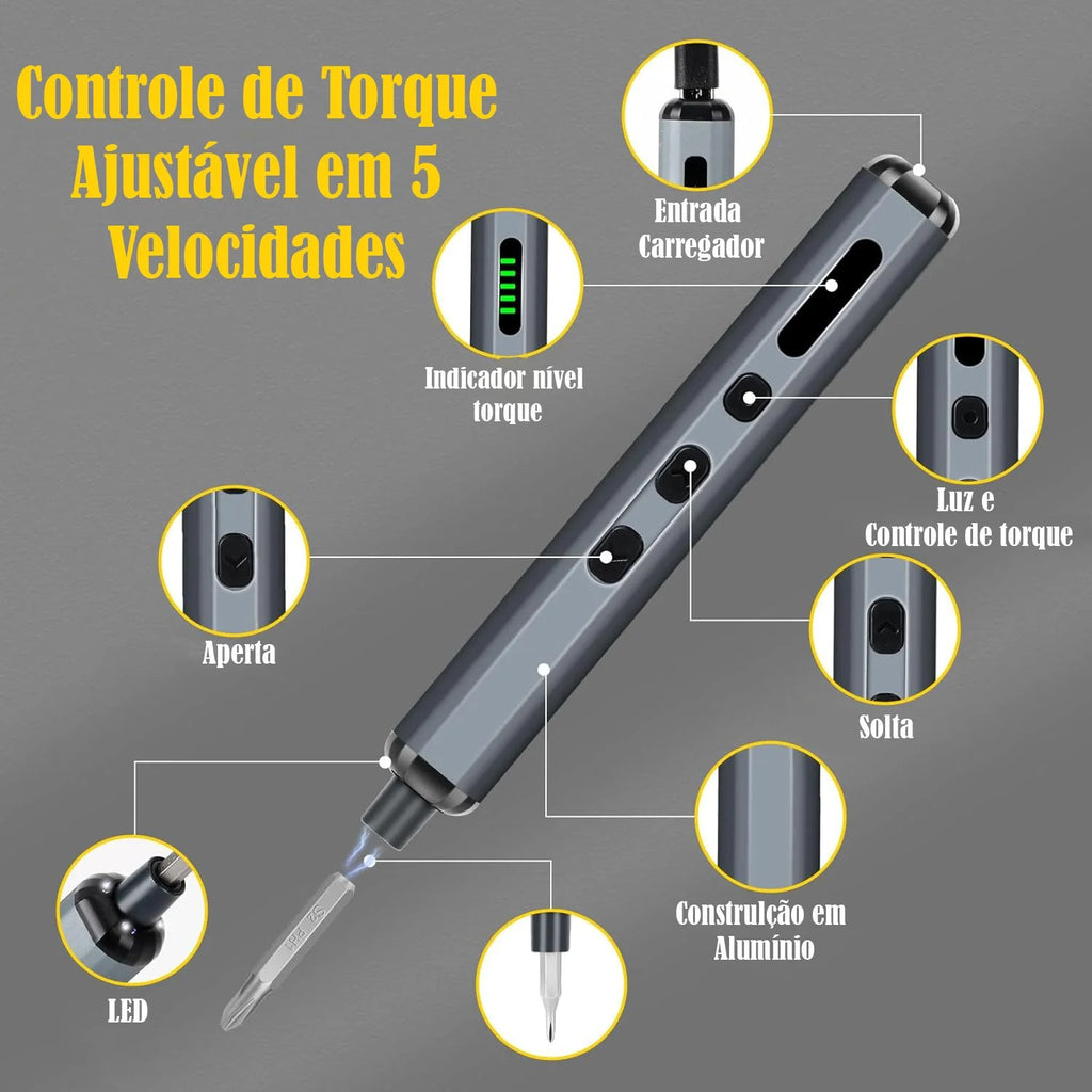 ✅ Controle de Torque com 5 Velocidades Ajustáveis